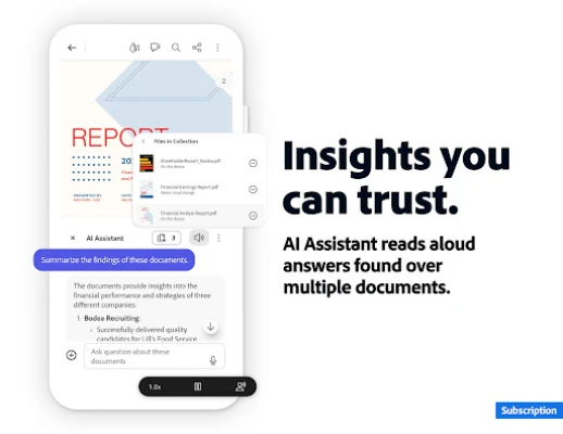 • Use voice support to ask Adobe Acrobat AI Assistant queries and have answers read aloud
