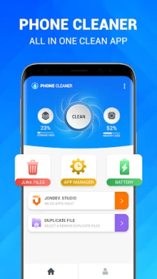 Phone Cleaner is a professional junk cleaner app for free, which has functions of junk file cleaner, app manager, battery monitor & duplicate file remover. Just clean app caches and junk files with ONE Click!